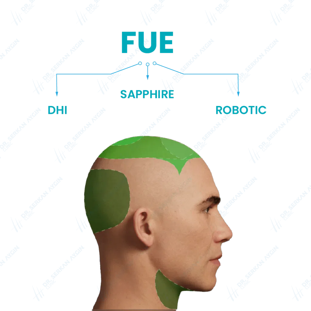 Since the FUE technique is characterized by minimal surgical intervention, it is one of the most comfortable methods for performing hair transplantation operations, and it is an alternative to the strip technique, but there are also other techniques, each of which is distinguished by its unique characteristics