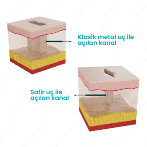 وهي أهم مرحلة في زراعة الشعر لأن النتائج المطلوب تعتمد على هذه المرحلة؛ ولذا فإنه يجريها أمهر الأطباء في مركز الدكتور سركان أيجين. وفي هذه المرحلة يقوم الطبيب بفتح القنوات بإستخدام أقلام السفير. ولأن هذه الأقلام تحتوي على رؤوس صغيرة وحادة فإنه تمكن الطبيب من فتح اكثر من 45 قناة في كل سنتمتر، كما أنها تجعل الطبيب يتحكم في اتجاه الشعر بسبب رسمتها المميزة للقناة أثناء فتحها، ثم بعد ذلك يقوم الطبيب بزراعة البصيلات التي اقتطفها بالملقط في القنوات المفتوحة بأقلام السفير، وبهذا الشكل تكون العملية قد انتهت، ويعطى للمريض مسكن للألم ومضاد للعدوى مع ارشادات عليه اتباعهامميزات تقنية السفير